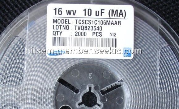 TCSCS1C106MAAR features: (1)Molded case available in four case codes; (2)New low profile size; (3)Compatible with automatic pick and place equipment; (4)Meets or exceeds EIA standard 535BAAC; (5)Environment-Friendly(Pb-free) tantalum capacitor.